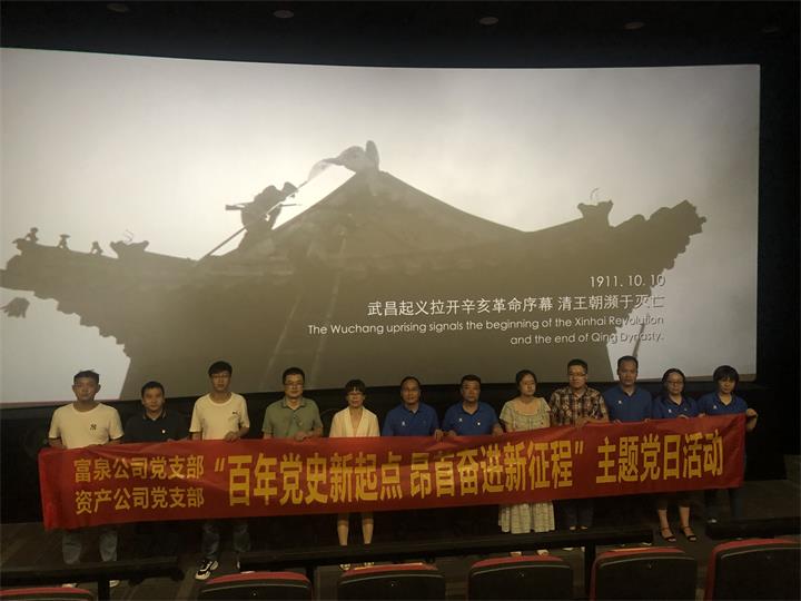 觀展結(jié)束后,為進一步引導黨員干部重溫黨史、傳承精神、洗滌初心、勇?lián)姑愿訆^發(fā)有為的精神狀態(tài)履行為民服務的初心,擔負起新時代職責使命。富泉公司黨支部、資產(chǎn)公司黨支部全體黨員一同走進電影院,觀看了紅色電影《1921》。該影片以時代“橫截面”視角切入,聚焦1921年前后的故事,全景式重現(xiàn)了百年前波瀾壯闊、開天辟地的歷史時刻,講述了一群來自五湖四海平均年齡僅28歲的熱血青年們,突破國際各股復雜勢力的監(jiān)控和追蹤,聚集上海召開中國共產(chǎn)黨第一次代表大會,見證了中國共產(chǎn)黨成立的歷史故事。這次觀影是一次令思想靈魂經(jīng)受洗禮的生動黨史學習教育課,對于黨員體悟建黨的艱辛歷程,堅定理想信念,重溫入黨初心有著極為重要的意義。