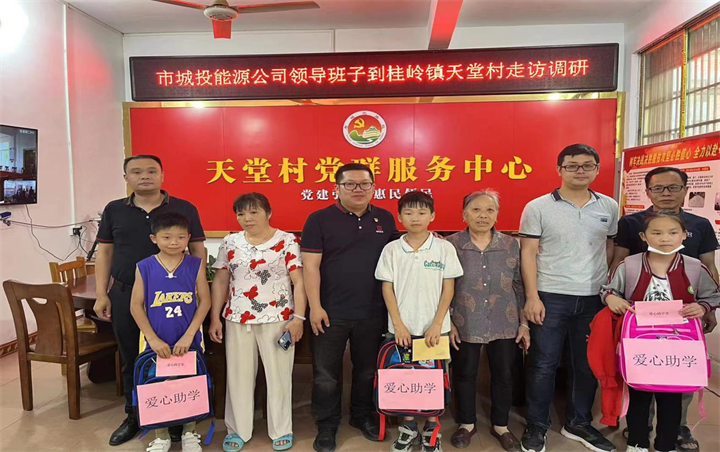 當(dāng)天下午,楊維、童杰新帶隊前往城投集團(tuán)定點(diǎn)幫扶村桂嶺鎮(zhèn)天堂村進(jìn)行了鄉(xiāng)村振興推進(jìn)情況走訪和愛心助學(xué)活動,向村委和駐村工作隊員詳細(xì)了解天堂村基本情況、基層黨建和鞏固脫貧攻堅成果同鄉(xiāng)村振興有效銜接等工作開展情況及存在的困難。楊維對駐村工作隊員所取得工作成果給予了充分肯定,并圍繞鄉(xiāng)村振興工作中所遇到的困難逐一研究提出了解決策略,并就下一步結(jié)合能源板塊發(fā)展業(yè)務(wù)促進(jìn)鄉(xiāng)村振興提出了新思路。
